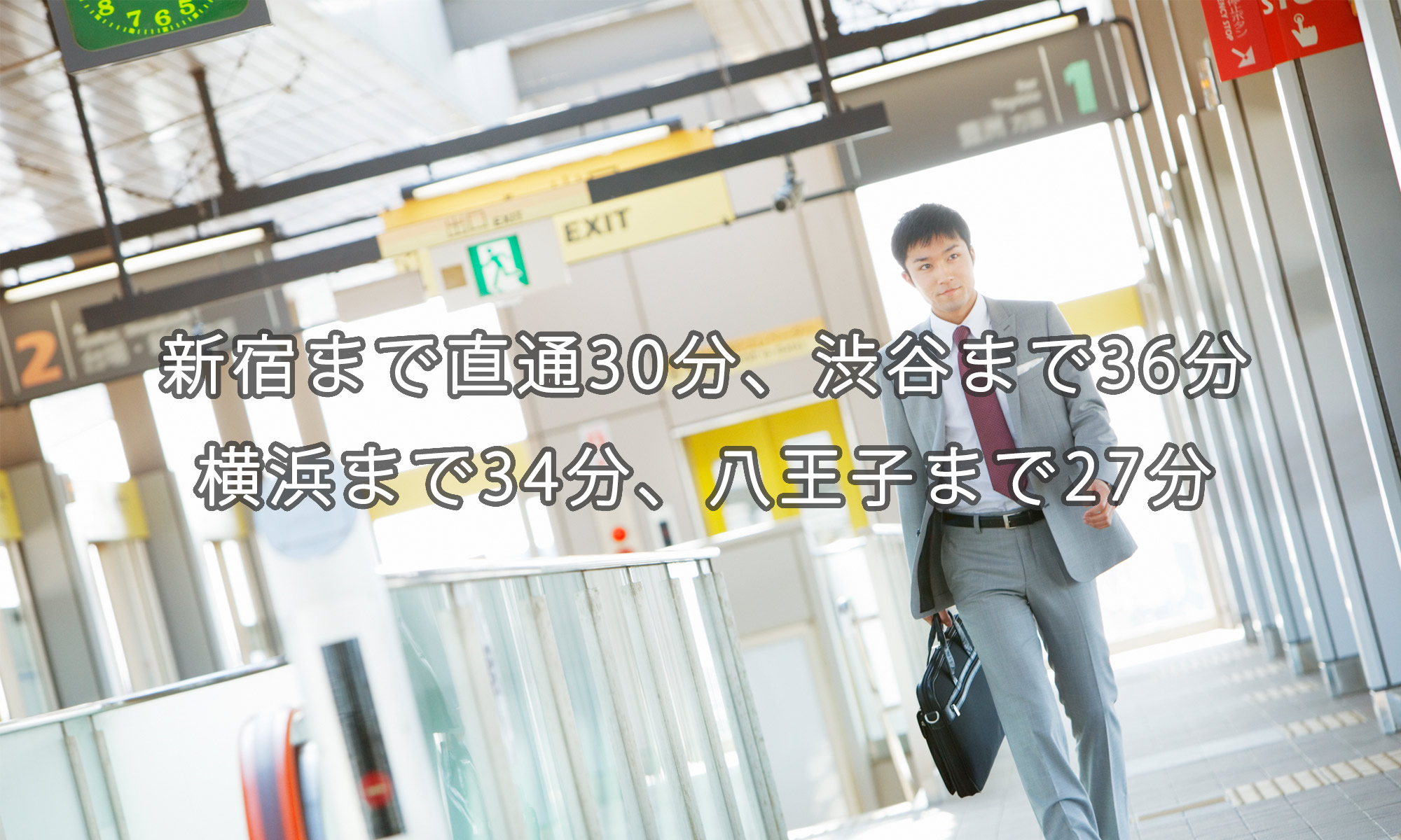 新宿まで直通30分、渋谷まで36分、横浜まで34分、八王子まで27分と周辺都市へのアクセスが抜群です。